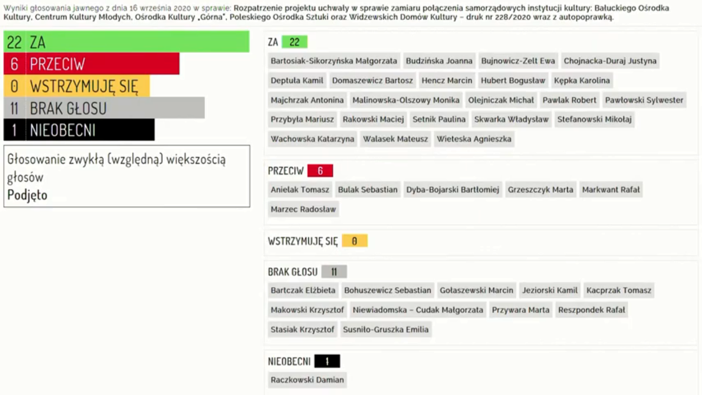 Samorząd Łodzi rozpoczął procedurę centralizacji domów kultury. Łódzcy urzędnicy ogłosili pomysł połączenia instytucji kultury na początku sierpnia. Na sesji 16 września Rada Miejska w Łodzi podjęła uchwałę dotyczącą zamiaru połączenia Bałuckiego Ośrodka Kultury, Centrum Kultury Młodych, Ośrodka Kultury „Górna”, Poleskiego Ośrodka Sztuki i Widzewskich Domów Kultury. Do połączenia miałoby dojść już 1 lutego 2021 r.